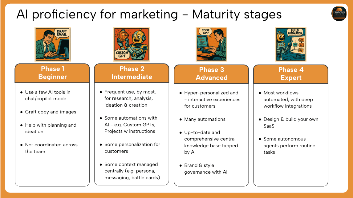 🔝 The maturity stages of AI proficiency for marketing - How to get to phase 2