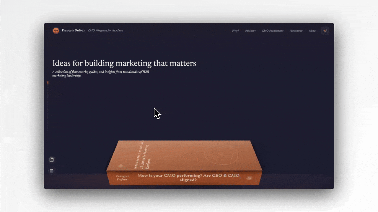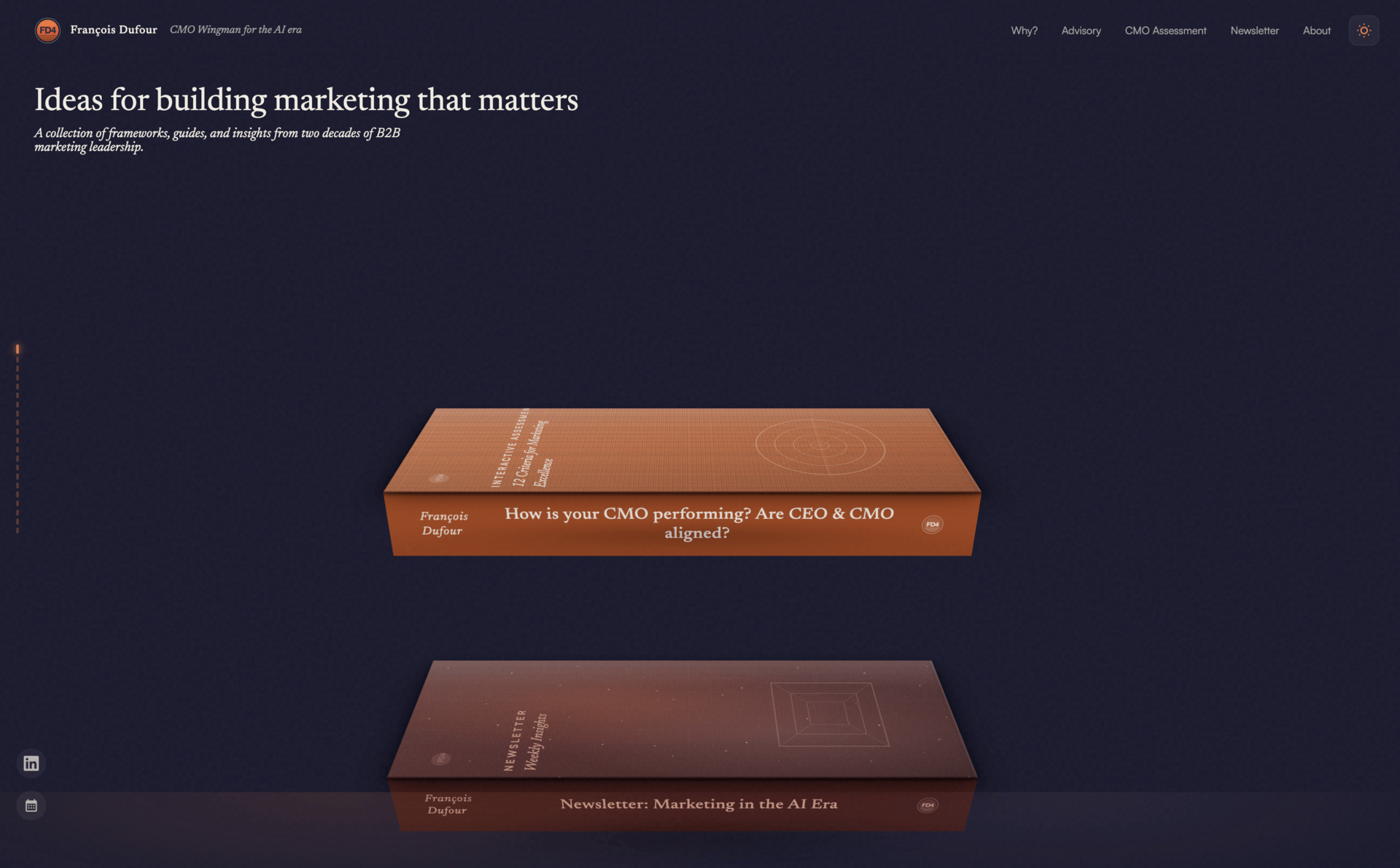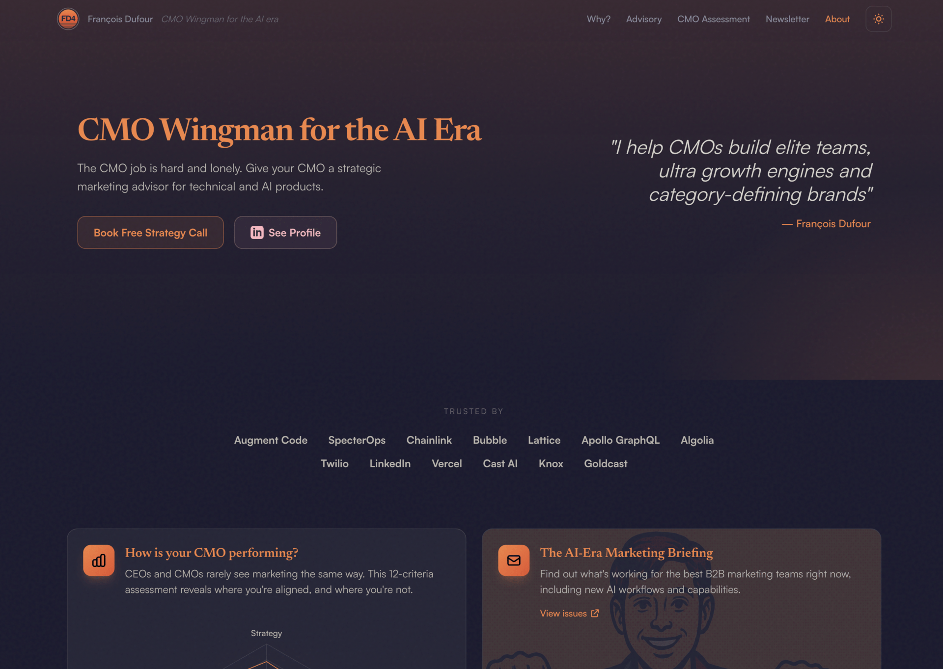I first built a CMO Assessment App for my clients (12 questions + a rubric to assess you/your CMO) and then the first version of my personal website.